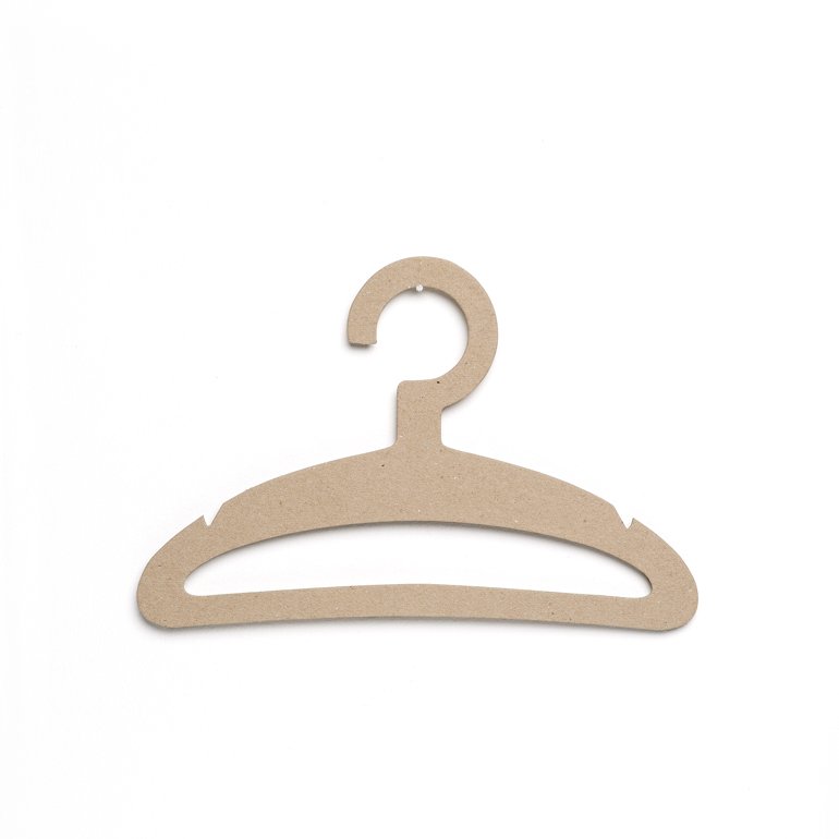 Cabide de papelão para roupas de bebê. O papelão ecológico com o qual este cabide é feito evoca associações positivas e, combinado com outros tecidos naturais, como algodão orgânico ou bambu, forma uma dupla perfeita. O cabide de papelão pode ser usado como um ótimo item de publicidade ou vitrine. Ele também atrairá a atenção de clientes ecologicamente conscientes e os fará escolher seus produtos com prazer.